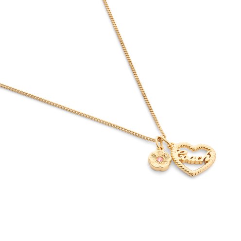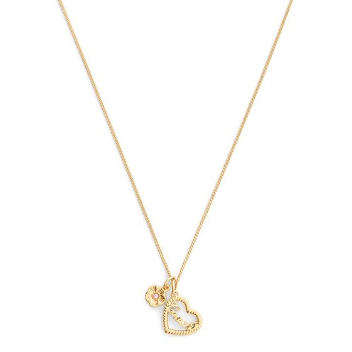 Refined chain necklace featuring timeless textured heart with signature COACH logo paired with minimal tea rose charm adorned with delicate stone for a sparkly touch. Necklace has an adjustable lobster clasp closure. Made from brass and glass crystal.