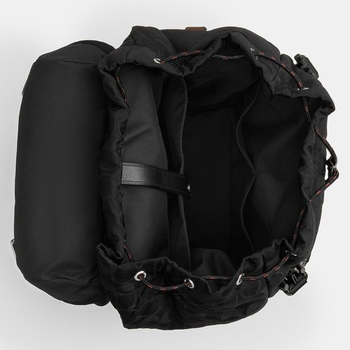 - Signature nylon jacquard, natural grain leather, smooth vegetable leather and nylon grosgrain