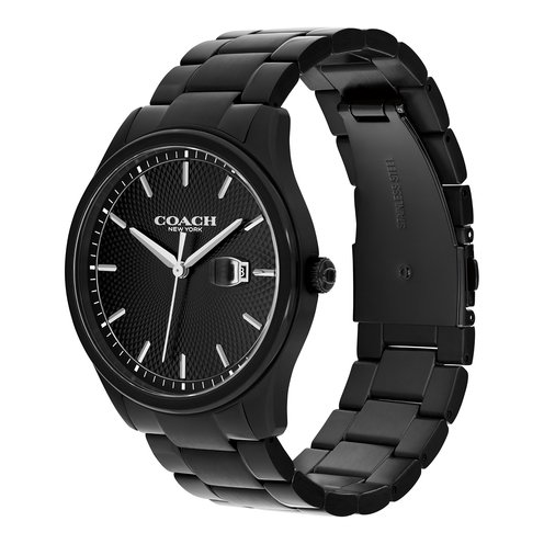 Combining classic good looks with a quiet confident attitude, the Oliver watch is a refined choice for everyday. This black ionic plated bracelet design features a black textured dial detailed with stately stick markers and a magnified date window at 3 o'clock.