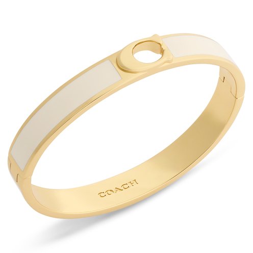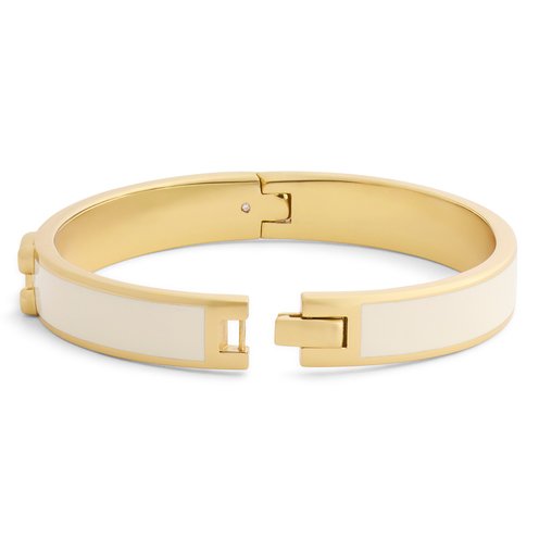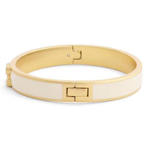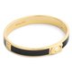 Refined neutral black enamel hinged bangle bracelet featuring signature sculpted C motif at front perfect for an everyday statement. Bracelet has an easy hinge closure. Made from brass and enamel.