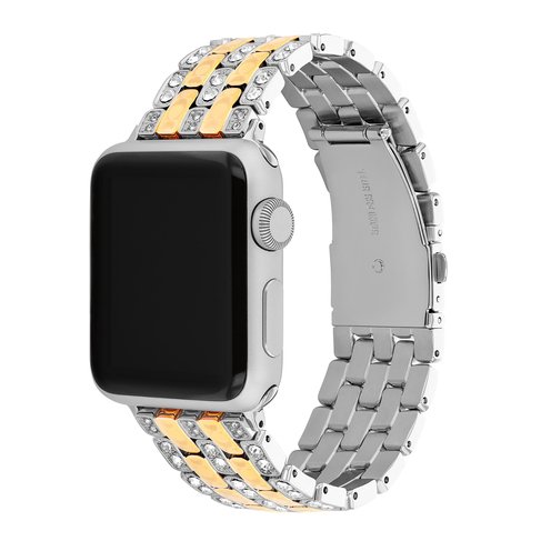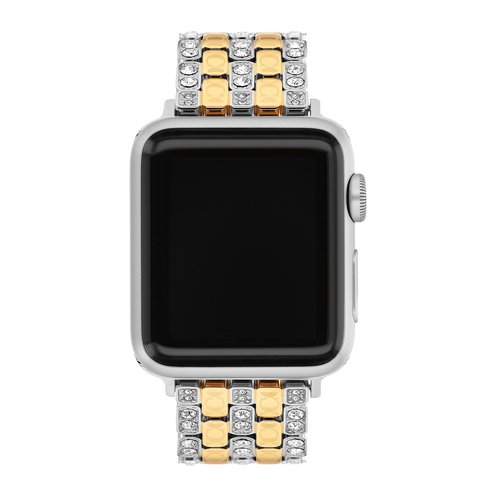 Made exclusively for use with the Series 9 and older 38/40/41mm and Series 10 42mm Apple Watch®, this dazzling two-tone stainless steel and gold tone 5-link bracelet is etched with the Coach Signature and detailed with pavé crystals for a sparkly touch.