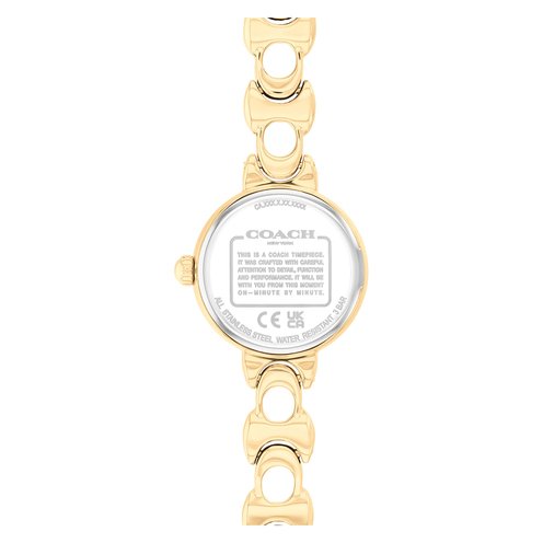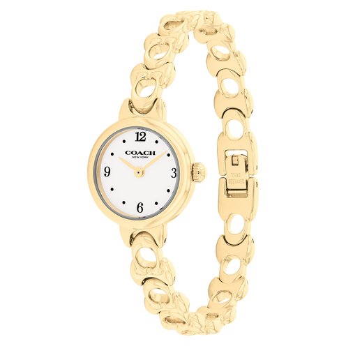 A classical round design, the Iris watch is a refined choice for every day. Finished with a modern bracelet featuring the iconic Coach Signature, this gold tone timepiece has a lacquer dial with a mix of numerical and dome markers.