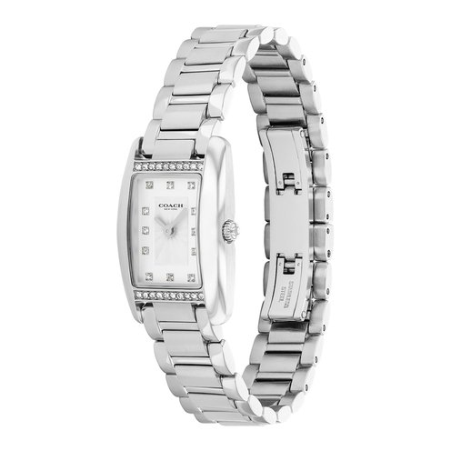 A distinctive stately design, the minimalist Reese watch is an elevated choice for everyday. Accented with shimmering crystal accents, the stainless steel bracelet design features a silver white dial detailed with square crystal markers.