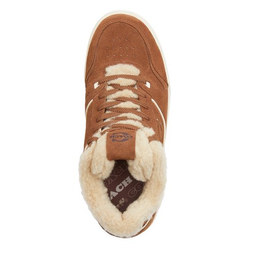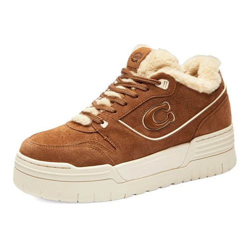 Our Coach Soho Platform Sneaker is inspired by the courageous free spirit of our hometown New York City and built to keep pace with life on the go. Crafted?of?soft suede and leather, it features a Shearling lining for cozy comfort.