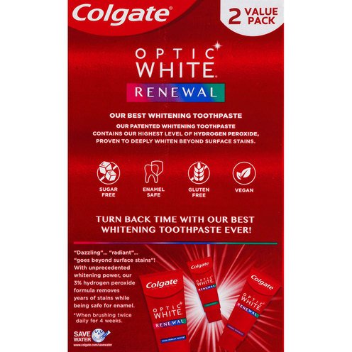 Sugar free. Gluten free. Vegan. 3% hydrogen peroxide. Enamel safe. Removes 10 years of yellow stains (when brushing twice daily for 4 weeks). New. Our best whitening toothpaste. Our patented whitening toothpaste contains our highest level of hydrogen peroxide, proven to deeply whiten beyond surface stains. Turn back time with our best whitening toothpaste ever! Dazzling - radiant - goes beyond surface stains!
