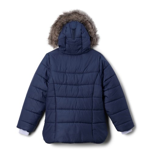 A comfortable jacket that keeps her warm in cold winter weather with its down insulation and an adjustable hood that seals out the elements.
