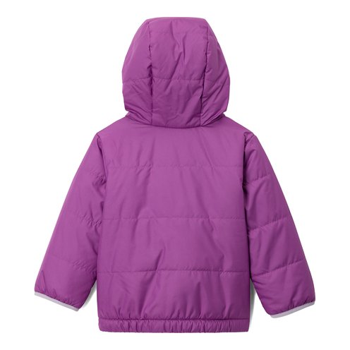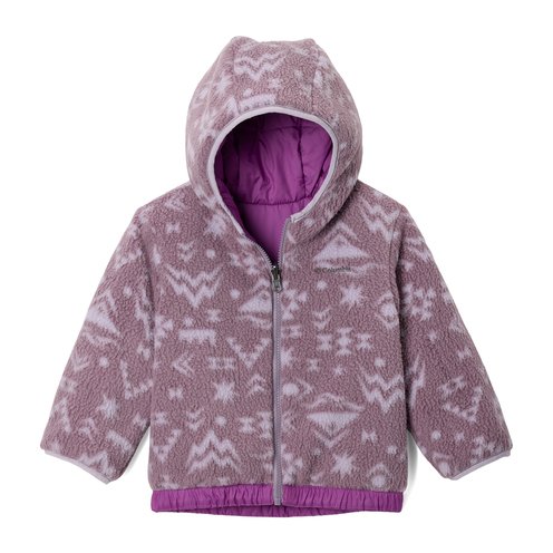 Tough enough for playgrounds, ready for when weather turns. This reversible jacket features water-resistant fabric on one side, lightweight insulation in the middle, and plush fleece on the other side.