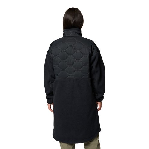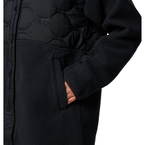 Take on the chill in this warm fleece jacket featuring an effortless snap closure and longer length that looks great over leggings or jeans.