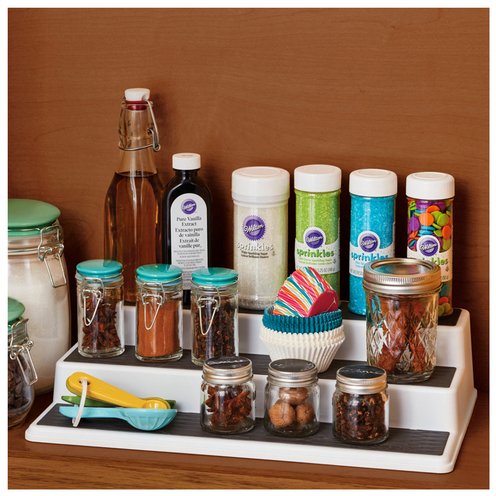 The Copco 3-Tier Cabinet Organizer is great for kitchen cabinets, plus countertops, under the sink, laundry rooms, pantries, garages and more. The "stadium" design maximizes cabinet space and keeps stored items organized and tidy anywhere in your home. Each shelf is 2.75" deep, perfect for organizing spices, soup or vegetable cans in the kitchen, plus cosmetics, perfume, skincare products, figurines, office or crafting supplies - the possibilities are limitless.