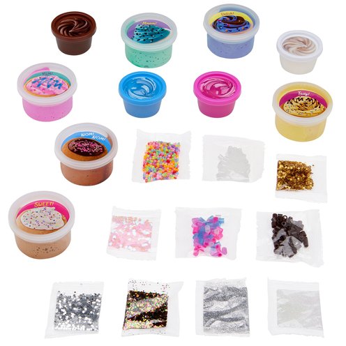 - Great as a gift, party activity, or slime-making starter sete lovers. It comes packed with 10 delightful compounds inspired by sweet, cookie-buttery fun. Kids can mix, stretch, squish, and blend endless textures using the included beads, confetti, and glitter. With so many combinations to explore, every creation feels like a brand-new treat.