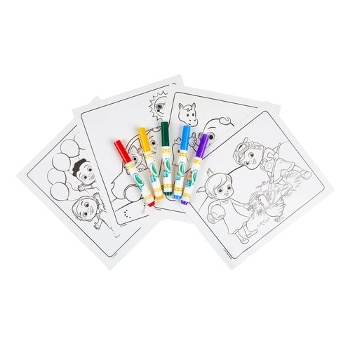Kids can color their favorite Cocomelon characters in a magical, mess free way with Crayola Color Wonder! Color Wonder colors appear only on special Color Wonder paper, not on skin, clothing, or carpets. This set contain 18 fun-filled coloring pages depicting characters and scenes inspired by the YouTube sensation, Cocomelon! Cocomelon characters promote learning, creativity, and fun. Little artists will love expressing themselves using included Color Wonder Markers that are perfect for travel and rainy days. Each page works with all Color Wonder markers, paints and stamps. The convenient "foldalope" packaging works as reusable storage for your coloring pages and markers. Includes 18 Cocomelon pages and 5 Color Wonder Markers. Makes a great gift for girls and boys ages 3 and up!