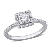 Take the plunge with this opulent princess halo engagement ring. Crafted in luminous 14k white gold, this shimmering ring features one princess-cut, prong-set lab-created diamond surrounded by 36 round-cut, buttercup-set diamonds (G-H, VS2-SI) creating a halo and extending halfway into the metal shank with one tsavorite gemstone accent embedded on the inside of the ring. Enhanced with a polished finish, this glistening ring will make a glowing fiance.