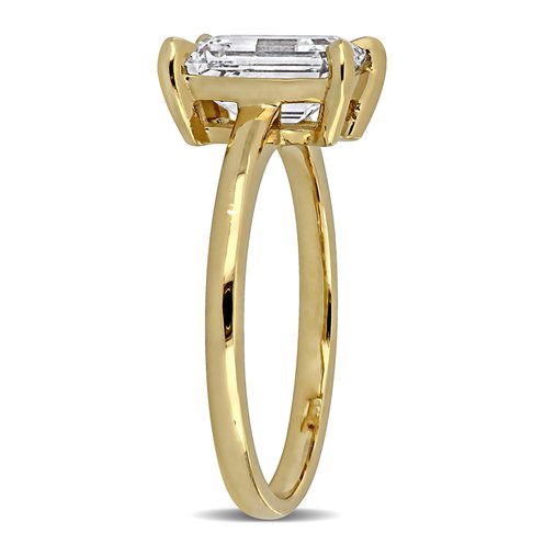 This stunning engagement ring showcases a 2 carat emerald-cut lab-grown diamond, set in warm 14K gold. Its sleek, sophisticated design highlights the diamond's clarity and brilliance, making it a timeless symbol of love and elegance.