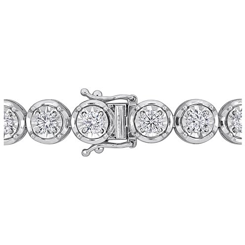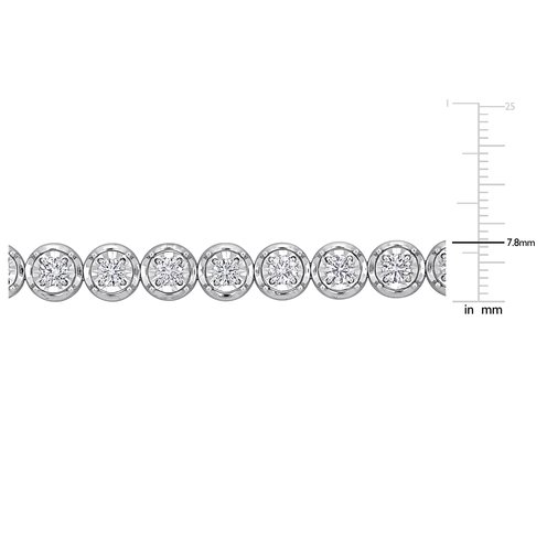 This eco-friendly choice features 4 4/5 carats of lab-grown diamonds, each encircled by a halo setting in 14k white gold. The 7-inch bracelet combines ethical sourcing with luxurious design, providing a guilt-free way to enjoy the splendor of diamonds. It's a perfect blend of sustainability and style, making it a forward-thinking addition to any jewelry collection.