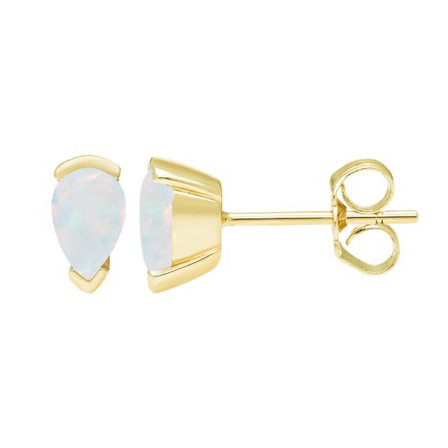 Perfect for everyday wear, these darling fashion stud earrings are a style must-have. Crafted in sterling silver with yellow gold flash plating, each earring showcases a 6.0 x 4.0mm pear-cut shimmering lab-created opal. Buffed to a brilliant luster, these post earrings secure comfortably with friction backs.