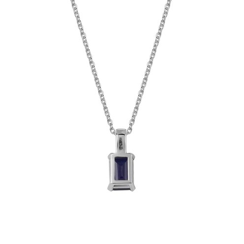 Add a touch of color to your neckline with this sterling silver Created Blue Sapphire pendant necklace. Featuring a Octagon-cut gemstone and white topaz accents, it hangs delicately from a sterling silver chain, making it a versatile and stylish addition to any jewelry collection. A must have pendant for September birthstone.