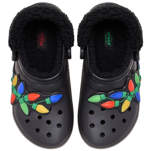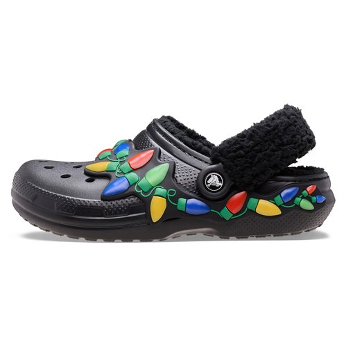 Festive and fun! This version of the iconic clog features holiday lights that light up with every step! The warm, fuzzy liner adds to the cushion and comfort, and Croslite™ foam construction keeps them light and easy to wear. Also available for kids and toddlers, so you can get matching pairs for festive family moments. Grounded in comfort, decked with holiday spirit.