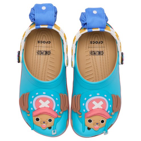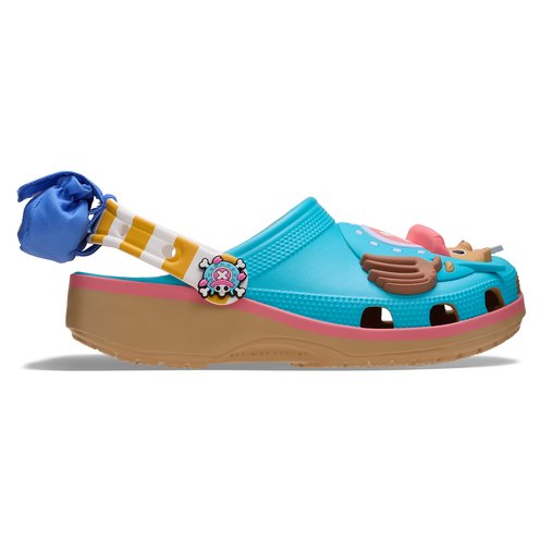 Take care with the Chopper Classic Clog from the ONE PIECE collection. This small reindeer brings big personality to this exclusive style with Tony Tony Chopper’s face covering the clog’s upper. A yellow and white striped print, like Chopper’s shirt, decorates the backstrap and a small blue pouch, like his backpack, adds a little extra room to stash your favorite Jibbitz™ charms.