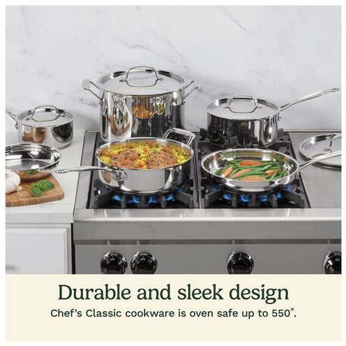 The kitchens of France were the inspiration behind the elegant Cuisinart® Chef's Classic™ Stainless Cookware collection. Cuisinart® expertise was the inspiration behind this spectacular 10 piece collection. We know our way around the kitchen, and have included everything you need to perfectly perform all the basic cooking tasks, large or small. From reheating a single portion of soup, to preparing appetizers, entr�e and side dishes for the entire family, you'll find every tool you need in this deluxe set. We guarantee it with a lifetime warranty.
