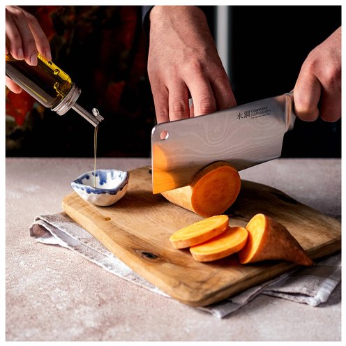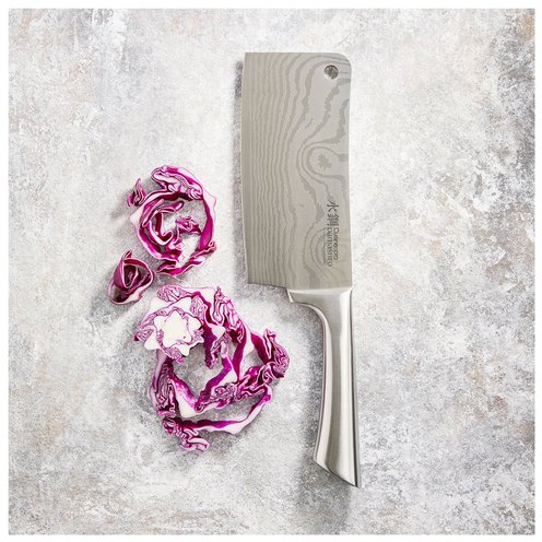 Cut through large pieces of meat with precision and control with the Baccaract Damashiro® Cleaver! This high-performance kitchen staple is forged with stainless-steel blades for ultimate sharpness and smooth, easy chopping. Perfectly weighted and balanced, the Cuisine::pro® Damashiro® Cleaver offers a professional touch to your culinary experience at home. With the Cuisine::pro® Damashiro® Cleaver, you can create delicious meals with precise handling and enhanced control. Featuring a traditional Japanese hammered (tsuchime) finish, the Cuisine::pro® Damashiro® Cleaver is a stylishly functional addition to any kitchen.