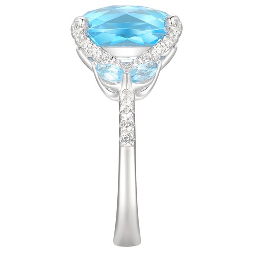 A shamelessly beautiful cushion-cut & marquise blue topaz with round white topaz in this exception sterling silver statement ring.