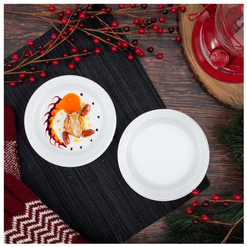 Spend less time worrying and more time serving with these 6-inch foam dinner plates. Lightweight yet sturdy enough to hold the heartiest meal, hot or cold. Add a touch of elegance without breaking the budget. These 6-inch disposable foam plates make serving and cleanup a breeze - great for food trucks, events, hotels and catering! Serve up your sauciest menu items with a non-absorbent feature that prevents leaks.