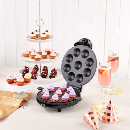 Bake and create imaginative recipes with the Express Mini Cupcake Maker! Dual nonstick cooking surfaces create mouthwatering creations with minimal clean-up every time, while their compact size leaves more counter space for decorating. A Recipe Guide is included so you can make deliciously cute cupcakes, muffins, and more in just minutes. Whether you're planning the next big party, prepping breakfast, or spending quality time with family- this is a Mini Maker everyone will love.