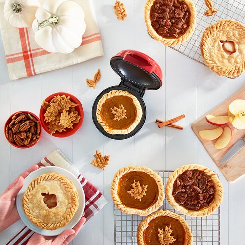 Make delicious, single-serving mini-pies on your countertop with the Dash Mini Pie Maker! The Mini Pie Maker’s PFOA-free non-stick surface heats quickly and cooks evenly, allowing you to make your favorite pies in minutes. From sweet pies like apple, blueberry and pumpkin to breakfast quiches and chicken pot pies, the Dash Mini Pie Maker does it all! Includes a circular crust cutter sized to the pie maker, taking out the guesswork from cutting your pie crust and ensuring perfect results every time.