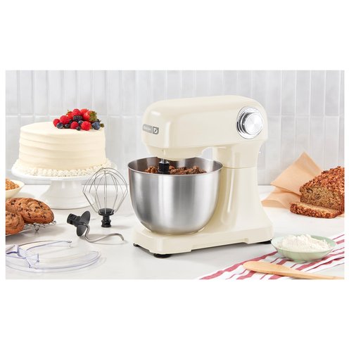 The baking buddy you never knew you kneaded! At 3.5QT capacity, it's great for baking needs big and small! Lightweight but powerful with 350 watts,12 Speeds, and 3 Attachments, it can cream, whip, whisk, beat, and knead with ease. Go full tilt with full-range Tilting Head that makes it easy to remove Mixing Bowl and adjust attachments. And whisk away with less mess thanks to included Splash Guard, complete with handy Ingredients Chute for adding your flavorites while you mix. Mixing Bowl is sturdy stainless steel for carefree mixing. Paddle Attachment is great for batters, frosting, cookie dough, and creaming butter and sugar. The Whisk Attachment tackles eggs and whip cream in a dash - also marvelous for meringues! And the Dough Hook does all the work when it comes to kneading out pizza and biscuit dough. Bowl & Attachments are dishwasher safe - easy baking, easy cleanup! Don't know what to throw into the mix? Recipes are included - can't beat that!