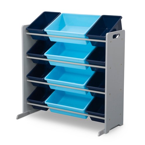 Store and organize toys, books, art supplies, dress-up clothes and more with our Kids Toy Storage Organizer. This storage unit features 12 sturdy bins in two sizes and will help organize any room in your house.