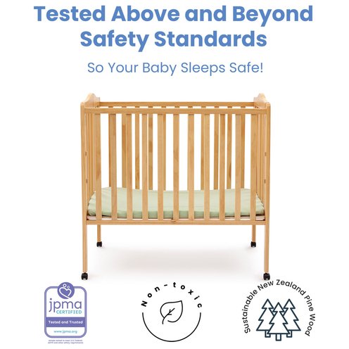Perfect for the family on the go this versatile, Delta Children's portable crib provides the utmost in safety and convenience. Folds flat for easy travel and storage. Comes with non-drop side rails. Set up is a breeze. It's one of the most convenient and stylish portable cribs on the market.
