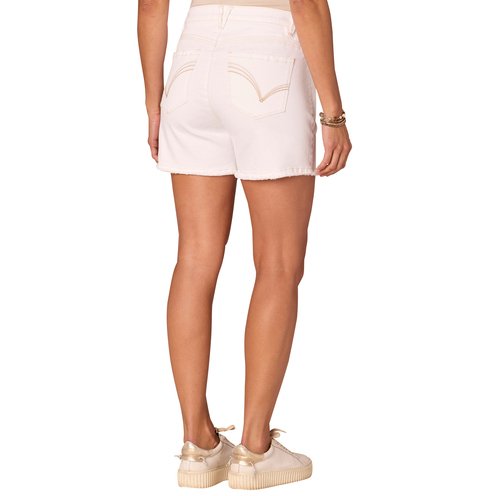 The white Bermuda shorts in plus sizing hug your shape through the hips with a relaxed fit that extends to the above?knee hemline.