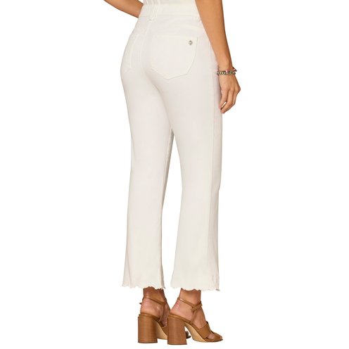 The white Itty Bitty Flare pant is fitted from the hips to the calves, featuring a subtle baby?flare leg opening. It includes a cropped embroidered die?cut scallop hem and is designed with "Ab" solution® fit technology to smooth, support, and enhance your shape.