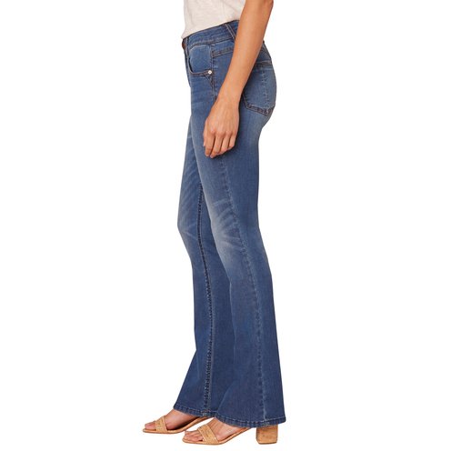 The Itty Bitty Bootcut jean is fitted from the hips to the calves, featuring a subtle baby?bootcut leg opening that creates a lengthening, balanced silhouette