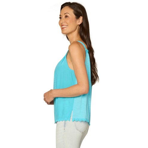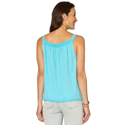 Our easy square?neck woven tank top features full embroidery detailing over a vibrant color.