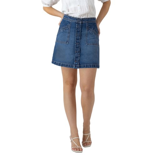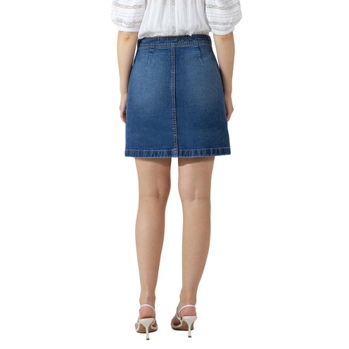This Dex denim mini skirt features a button-front design and structured fit, delivering timeless style with effortless everyday appeal.