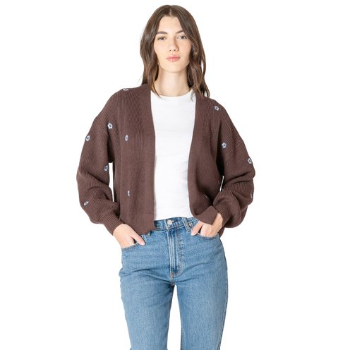 Add a feminine layer to any look with this floral open cardigan, featuring a soft drape and easy, throw-on style.