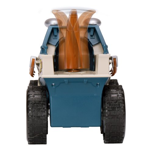Chomp takes on new meaning with this item. Dino chomp as they roll and when the music plays. Button panel on the roof controls all the actions!“Try Me” package.Realistic shark sounds, music, lights and motorized actions.Open/close jaw and tail thrashing.