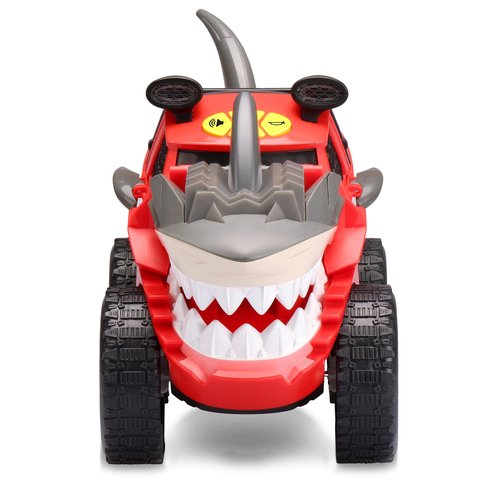 Chomp takes on new meaning with this item. Shark chomp as they roll and when the music plays. Button panel on the roof controls all the actions!“Try Me” package.Realistic shark sounds, music, lights and motorized actions.Open/close jaw and tail thrashing.