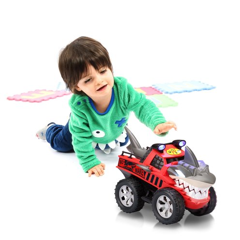 - Shark lights & sound vehicle is made from non-toxic plastic and will withstand repeated play by children. Virtually indestructible. In addition, the toy is independently lab tested for safety to insure no sharp edges, corners, and safe paint.