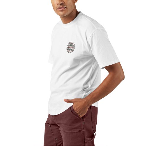 The Dickies Circle Short Sleeve Tee brings relaxed comfort to your everyday look. The fit ensures a loose, relaxed fit. The collarless neck makes the T-shirt extra comfortable to wear. The sturdy material lasts a long time.