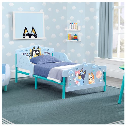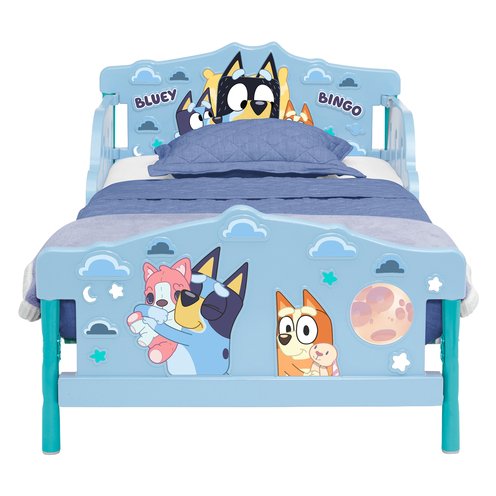 This Bluey 3D Toddler Bed by Delta Children will have kids excited for bedtime. Colorful decals of fun-loving heeler pups from the land down under, Bluey and Bingo, plus three-dimensional accents on the headboard, footboard and side rails makes this toddler bed is a must-have for any Bluey fan. For additional security, this toddler bed is the perfect kid-sized height and has two attached guardrails, which makes it the best option for your child’s first big-kid bed. It provides the independence your growing child craves while keeping them safe throughout the night. The Bluey 3D Toddler Bed by Delta Children is sure to inspire big dreams for your little one.