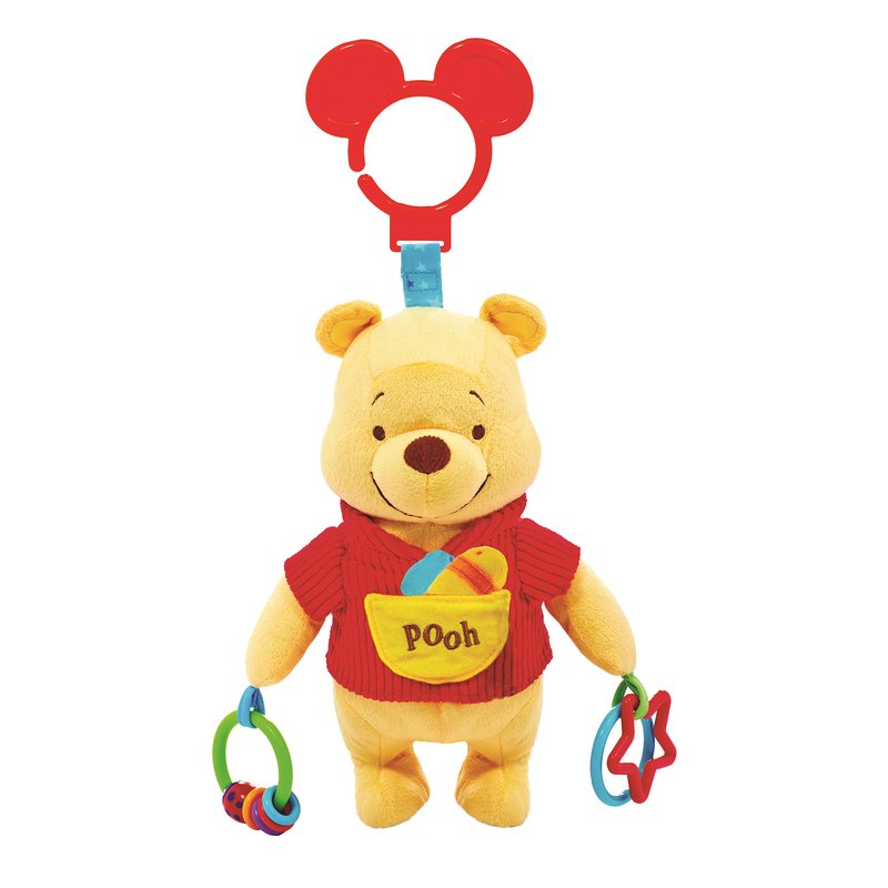 Winnie the Pooh and friends are some of the most beloved characters from the Disney lineup! They represent friendship, humor, innocence, and childhood memories. Hang this Winnie the Pooh Activity Toy from a stroller or crib and watch your baby's eyes light up from all the fun and developmental features! Features include a squeaker, crinkle textures, rings for your teething baby, peek a book flap and a bee soft attachment. When turn side to side you can hear Pooh’s “rumbly tumbly” belly!