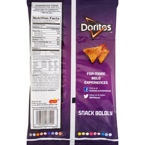 - Corn, Vegetable Oil (Corn, Canola, and/or Sunflower Oil), Salt, Sugar, Monosodium Glutamate, Fructose, Sodium Diacetate, Soy Sauce (Soybean, Wheat, Salt), Onion Powder, Maltodextrin (Made from Corn), Hydrolyzed Soy Protein, Hydrolyzed Corn Protein, Garlic Powder, Torula Yeast, Malic Acid, Extractives of Paprika, Spices, Caramel Color, Disodium Inosinate, Disodium Guanylate, Dextrose, and Natural Flavors.