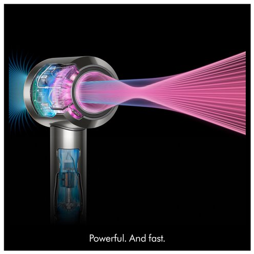 - Fast drying. The small, powerful Dyson digital motor V9 combined with air Multiplier™ technology produces a high-pressure, high-velocity jet of controlled air for fast drying and precision styling.