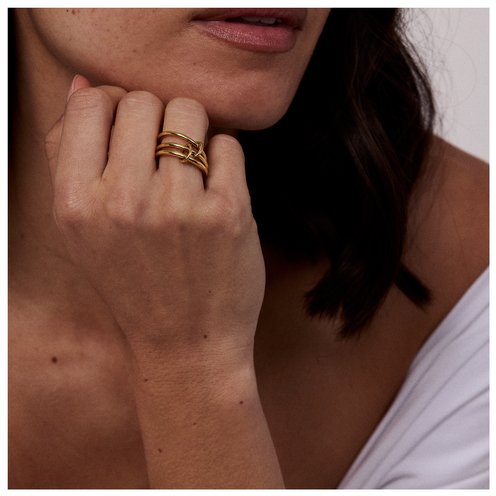 One ring, endless possibilities. Our Sabrina Ring features a triple-band design linked for seamless stacking. Modern, versatile, and effortlessly chic—wear it solo or combine it with your other favorites.