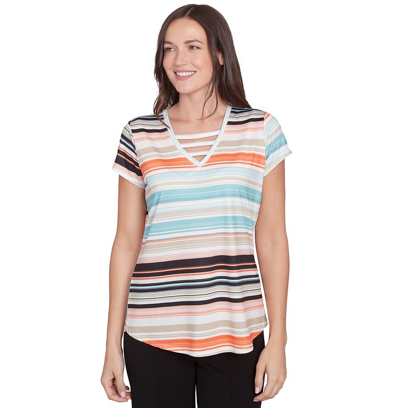 Emaline Women's Stripe Lattice V-neck Tee (petites) | Women's Casual Tees & Tops | Women's - Shop Your Navy Exchange - Official Site