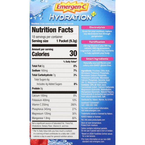 Enhanced replenishment is a big plus! Emergen-C Hydration+ is plussed-up with key electrolytes, minerals and vitamin C to give your workout water a boost. Enhance your workout water with a delicious mix that replenishes and fortifies your body naturally. Enjoy low calorie replenishment with lower sugar (75% lower sugar than the leading sports drink).