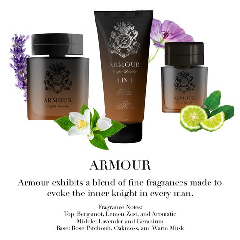 English Laundry Armour exhibits a blend of fine fragrances made to evoke the inner knight in every man.