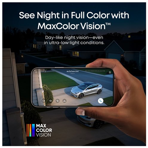 - Powered by 2K QHD and MaxColor Vision™, the camera delivers vivid, full-color surveillance footage. Enjoy a day-like view even in ultra-low light conditions.